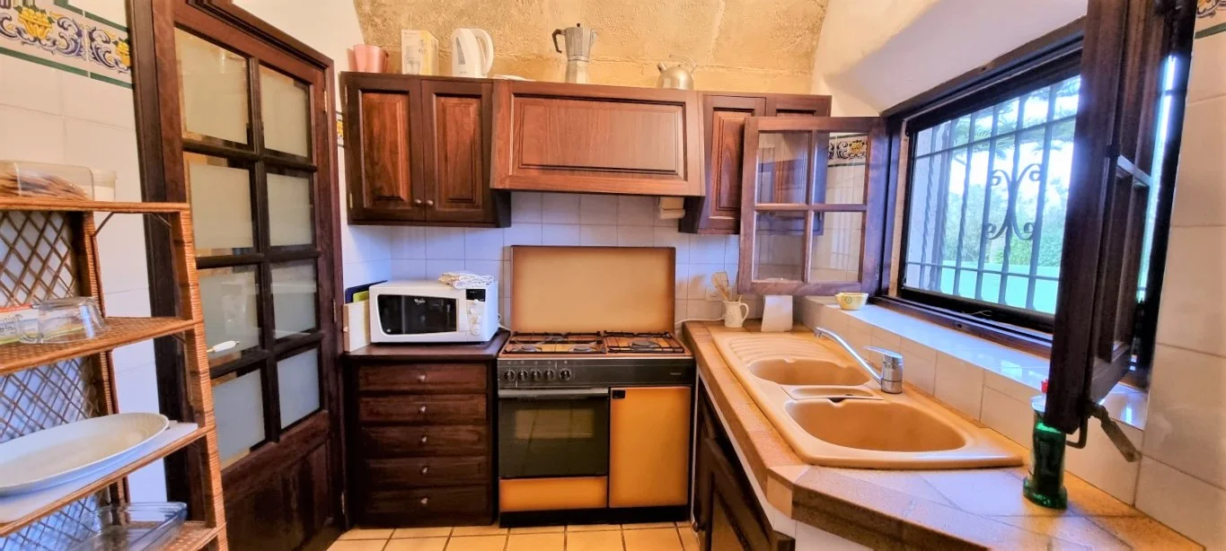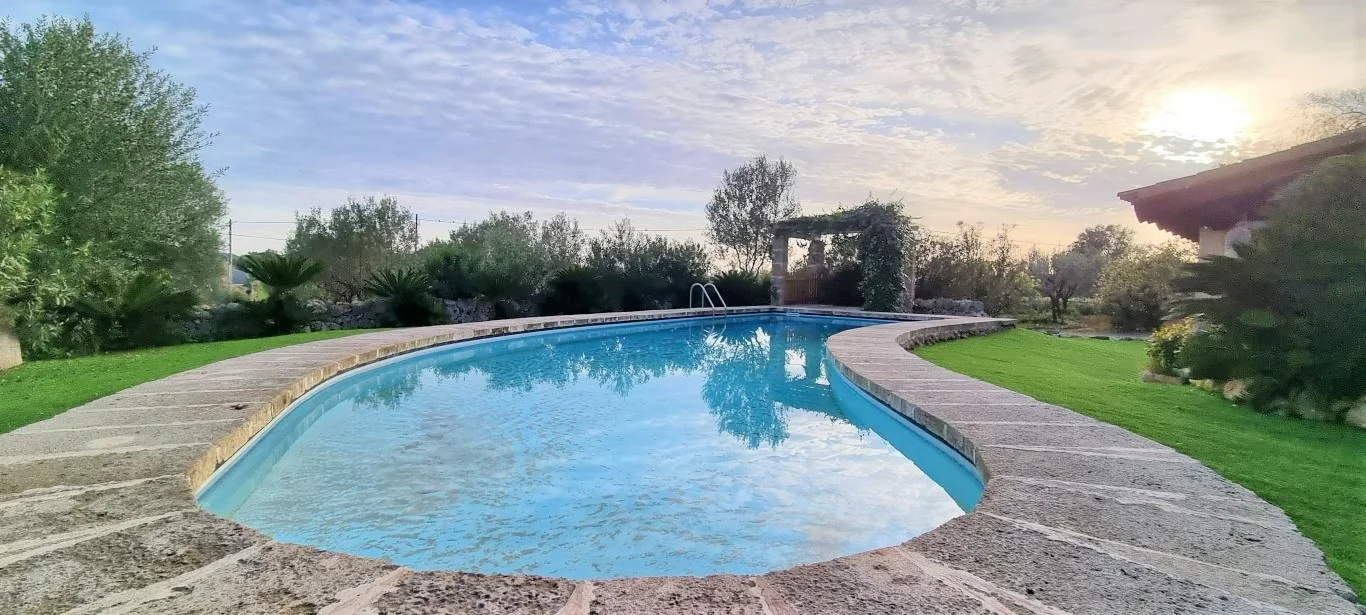 Está construido con materiales de primera calidad. Las paredes son de piedra natural respetando el estilo mallorquín.
