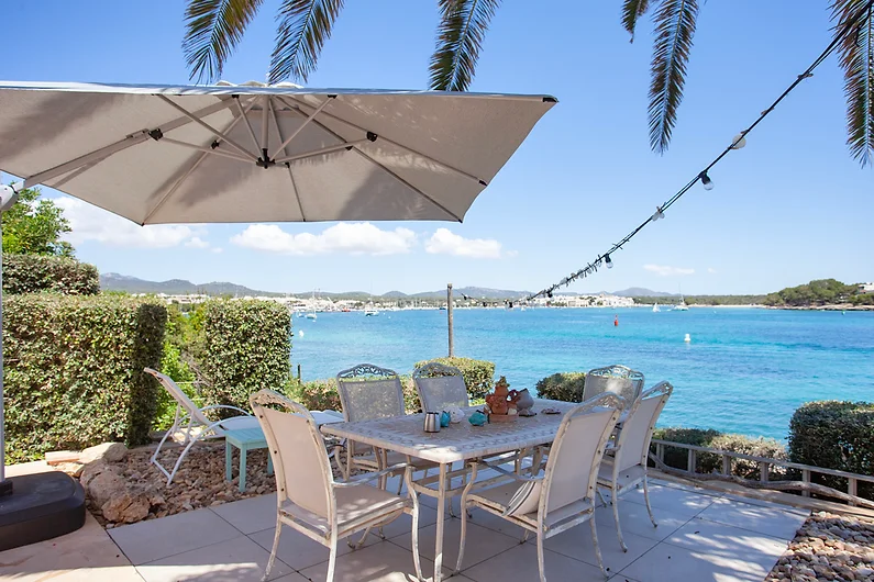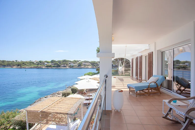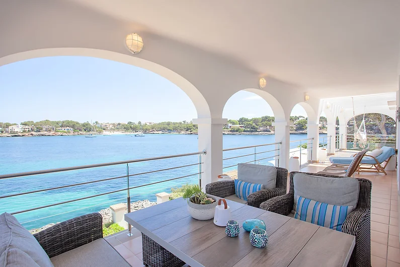 Esta casa, ubicada en una privilegiada primera línea de mar en Portocolom, ofrece unas vistas espectaculares.