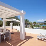 En el exterior, la propiedad cuenta con una gran piscina de aproximadamente 40 m², un comedor frente al mar, un garaje y una amplia terraza.