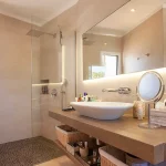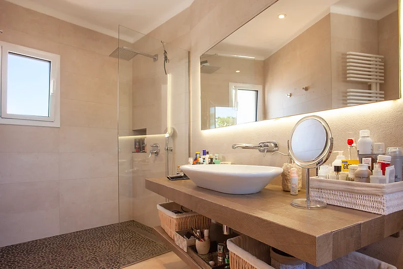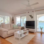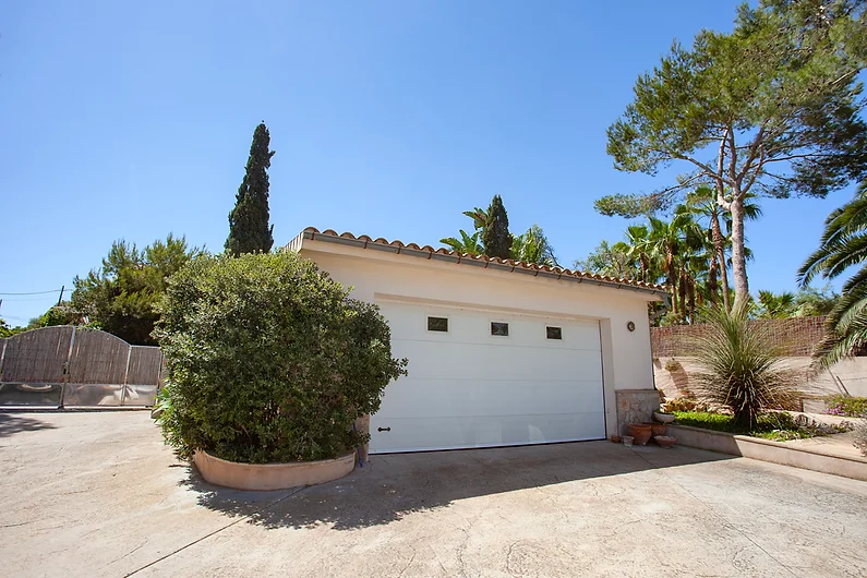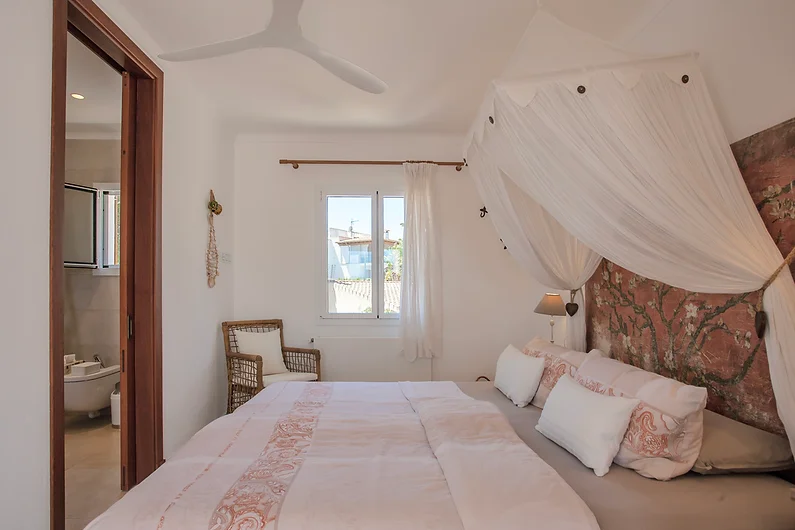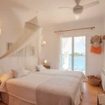 La vivienda principal cuenta con cuatro dormitorios dobles, un vestidor, tres baños, y una preciosa sala de estar con chimenea y vistas a la playa. La sala de estar tiene acceso al comedor, que consta de ventanales que permiten una gran entrada de luz y ofrecen impresionantes vistas al mar. El comedor se conecta con la cocina para una mayor practicidad.